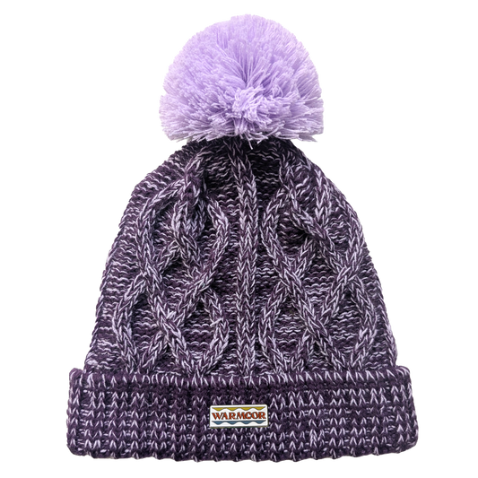 Cable Knit Bobble Hat - Lilac & Plum