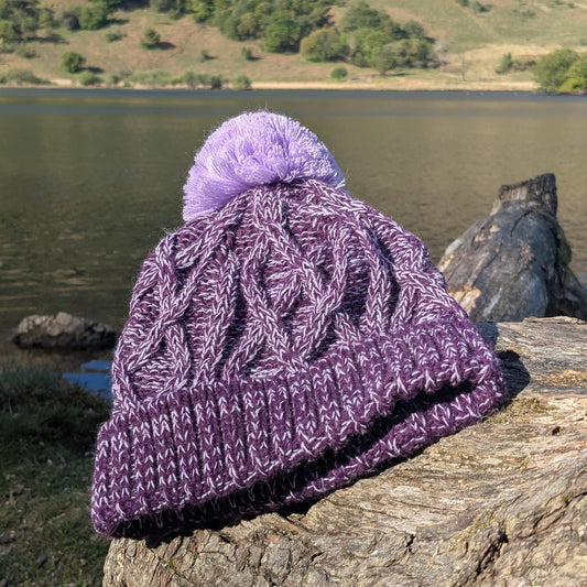 Cable Knit Bobble Hat - Lilac & Plum