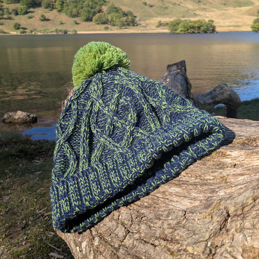 Cable Knit Bobble Hat - Green & Marine