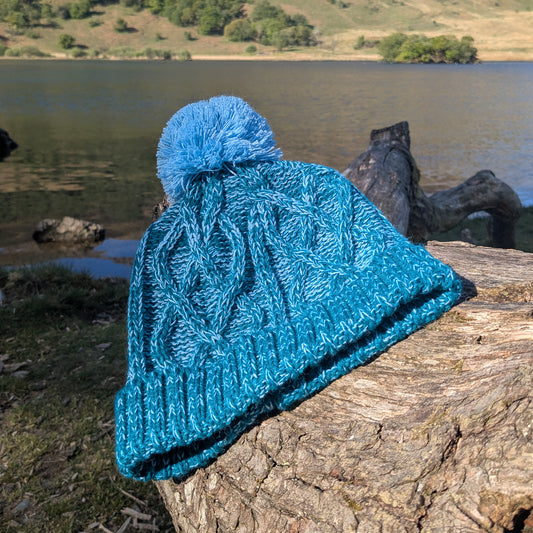 Cable Knit Bobble Hat - Blue & Teal