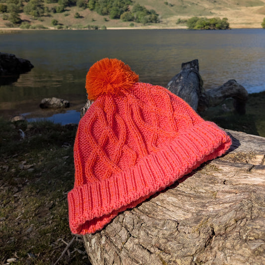 Cable Knit Bobble Hat - Orange & Coral
